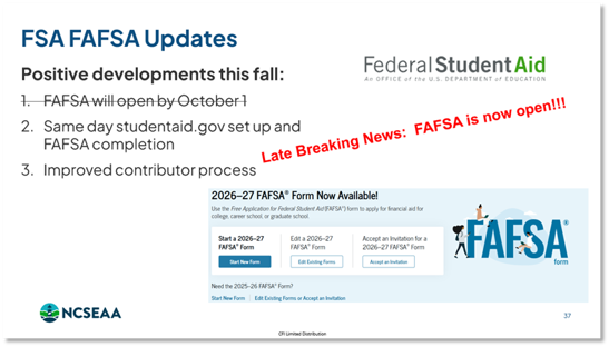 Parte de la información importante que recibieron los consejeros fue sobre la situación de la ayuda financiera federal y el formulario utilizado para solicitarla.